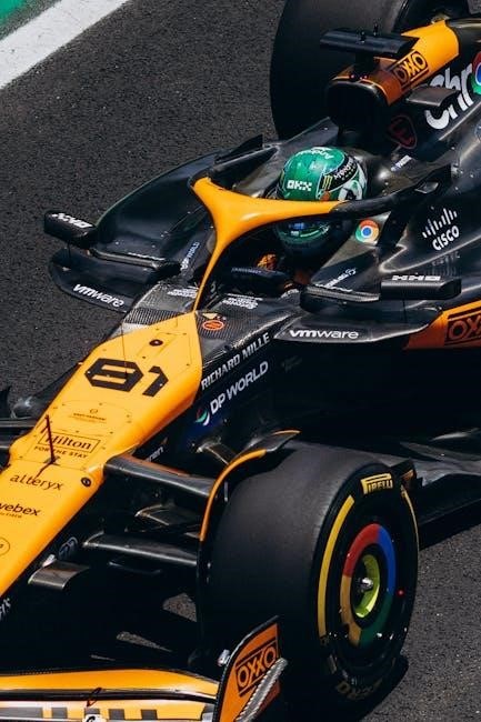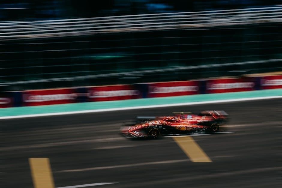 Vehicle dynamics play a critical role in race car performance‚ directly influencing speed‚ stability‚ and handling. By optimizing factors like weight distribution‚ suspension‚ and aerodynamics‚ teams can enhance cornering capabilities‚ reduce braking distances‚ and improve overall lap times. Understanding these principles allows engineers to fine-tune cars for specific tracks‚ ensuring maximum efficiency and competitiveness. Proper vehicle dynamics ensure consistent tire behavior‚ better energy absorption‚ and improved driver control‚ making it a cornerstone of race car engineering.
